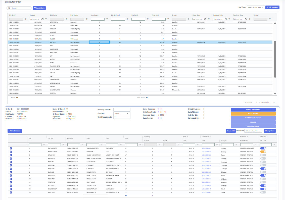 stockBook Lists / displays all inventory levels by Category, Location, Format, Genre, SKU, CatNo/Barcode, Status, etc. It enables real-time tracking of stock-on-hand, reserved units, and incoming replenishment sourced from the orderBook. The stockBook allows for information to be cross-referenced from the searchBook in one click, making it simple to perform stock adjustments, audits, or transfers. It is designed to automate inventory reconciliation, ensuring that stock levels are dynamically updated as orders are fulfilled, removing the need for manual spreadsheet logging or data duplication. Automated Push/Pull Stock and other details to & from Website within seconds, ensuring no oversell on integrated EPOS.